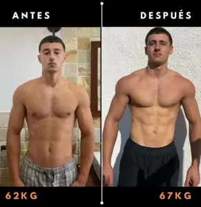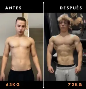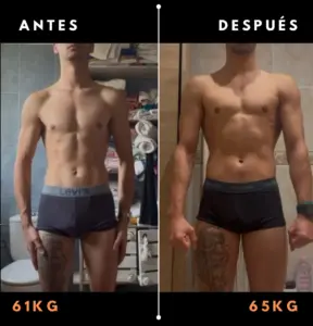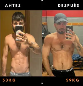 “Tenía muchas ganas de ganar volumen, pero me frenaba el miedo a ganar grasa en el proceso. Simo entendió mi preocupación desde el primer día y diseñó un plan tan preciso que logré lo que creía imposible: subí 9 kg de peso en un año, transformando mi contextura por completo sin perder la definición. Hoy me veo mucho más fuerte y masivo, y lo mejor es que seguimos avanzando hacia una versión aún mejor. Confiar en Simo fue la mejor decisión para mi físico.!” – Carles