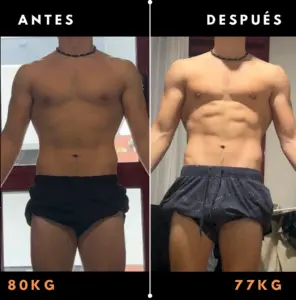 “Cuando llegué a Simo, mi idea era ganar volumen de inmediato, pero su ojo profesional vio algo diferente: necesitaba limpiar mi base primero. Confié en su criterio y el resultado fue increíble: bajé 3 kg en solo 20 días con una rutina de alta intensidad. Ahora mi cuerpo está realmente preparado para construir músculo de calidad. Simo no solo te entrena, te asesora con honestidad para que no pierdas el tiempo.” – Enrick