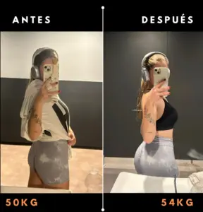 “Entrar al gimnasio por primera vez me daba un poco de respeto, pero contar con la asesoría de Simo cambió mi perspectiva por completo. En solo 3 meses, logré ganar 4 kg de masa muscular, sintiéndome mucho más fuerte y segura conmigo misma. No solo transformé mi cuerpo, sino que aprendí a entrenar con la técnica correcta desde el primer día. ¡Es la mejor inversión que he hecho en mi salud!” – Alicia
